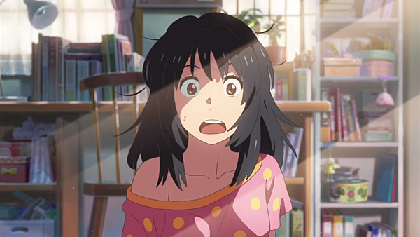 之前所看過的交換身份題材作品,大概不脫離從身份交換後體會對方處境,進而體諒對方改變自身原有想法的概念,而「你的名字」卻少了幾分這樣的做法,比較著重在兩人在交換身份時產生的笑點與逐漸產生的情感,至於體會對方處境的想法上,也轉化成增添彼此感情的鋪陳上,讓劇情有別於其他電影的就在於使用也是萬年老梗的時空跳耀上了,印象中,「你的名字」應該是我看過第一部將這兩個老梗合併一起,且運作的既流暢又引人入勝的電影,時空跳躍的元素讓整個故事多了許多不確定性,原本單純的愛情電影瞬間充滿許多謎團,讓觀眾宛如霧裡探花,而劇情中試著從未來回到過去改變既有的現實,竟然也讓我看的心情七上八下的,不知最後結局為何的刺激感,可是勝過不少同期上映的電影,能夠獲得這麼廣大的口碑與票房的確有它的本事在。