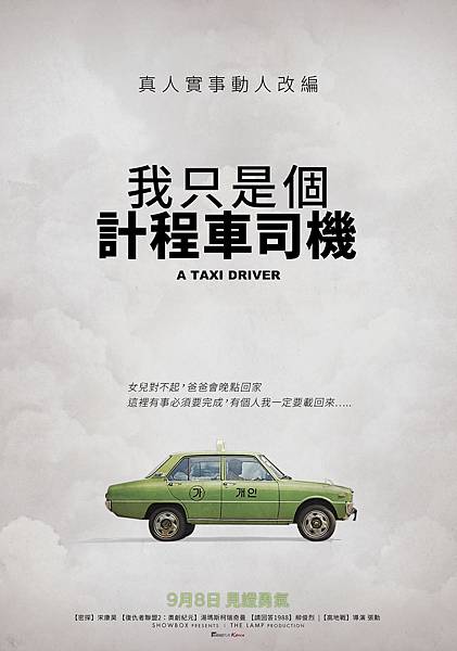 改編自真實事件的「我只是個計程車司機」,故事背景是源自1980年南韓的「光州事件」,一位首爾的計程車司機,為了還清家中的負債載了一名德國籍記者Jurgen Hinzpeter冒險前往光州進行拍攝,原本只想賺取豐厚報酬的他因目睹軍隊殘暴對待人民的景況後,內心陷入天人交戰,在平安回家與讓世界知道光州事件的真相中掙扎不已.....電影很巧妙的從當時搭載記者的計程車司機觀點出發,藉由平民的角度來看待整起事件的經過,從一開始的不諒解,嘲笑諷刺上街抗議的大學生,直到見證國家軍人不留情的攻擊手無寸鐵的平民,連自身安全也深受威脅,最後挺身而出,冒著生命危險也要將真相公佈於世,一面批判當權的政府、一面褒揚勇於挺身而出的小人物,將光州事件殘酷且真實的一面呈現給觀眾,也讓觀眾體會到現今所享有的民主生活是如此得來不易,